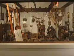 One of Bugbee's designs, which depicts Texas Longhorns and a cowboy crossing the Red River at Doan's Crossing north of Vernon, is featured on the 1931 Trail Driver's Monument at the ghost town of Doans, where the postmaster Corwin F. Doan also operated a store to supply the cowboys.[9] Since 1884, Doan's May Picnic has been held on the first Saturday of May at Doans. A barbecue lunch and T-shirts are available for sale, and a king and queen are crowned at the event. Riders cross the river each year from Oklahoma, and usually arrive just before noon. The 1881 adobe house, the oldest in Wilbarger County, is open for tours during the picnic.[10]