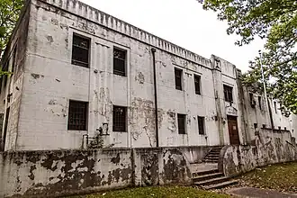 Built in 1938, this historic structure is a two-story, stucco-coated, concrete building that was designed in the Moderne style. It has a modified T-plan, with administrative rooms and garage located on the first floor and drill hall placed above. An L-shaped addition dates to 1974. A notable feature is its decorative exterior, including a parapet, recessed window panels, and a distinctive front wall adorned with chevrons, cannons, and "PNG" initials.[2] Since 2003, it has been owned by the City of Harrisburg and is currently in use as vehicle storage for the Department of Planning & Engineering.