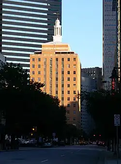 The $5 million office building, built during a time of large insurance growth in Dallas, was constructed to serve as the southwestern regional home office for the Hartford Fire Insurance Group.[2] It was developed by Trammell Crow and Eugene Locke, and opened in 1960.[3] An incident occurred during construction in 1959, when a 20-foot (6.1 m) steel beam and a brick fell to street below from one of the upper floors. The beam pierced a truck and was embedded into the pavement and the brick bounced off a car below; amazingly, no one was injured.[4] The building's Bryan Street Garage with 400 spaces was replaced with a shared-use garage built for the adjacent Patriot Tower in 1981.