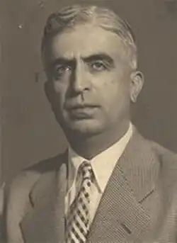 Then Akhavi served as a military attaché in Turkey, Greece and Yugoslavia for a short term.[1] In 1956 he returned to Iran and became the head of the Forestry Organization and the commander of the Forest Guard.[1] Akhavi was appointed minister of agriculture in the cabinet led by Prime Minister Manouchehr Eghbal on 4 April 1957.[2][7] He was also promoted to the rank of major general the same year.[1] Akhavi was removed from the office due to his opposition to the land reform plan in 1959.[1][8] Jamshid Amouzegar replaced him as minister of agriculture.[8]