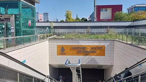 Hastane - Adliye is an underground station on the M4 line of the Istanbul Metro in Kartal.[2] It is located beneath the D.100 State Highway in the Esenkent neighborhood and is the westernmost metro station in Kartal. Connection to IETT city buses and Istanbul Minibus service is available. The station consists of an island platform with two tracks and was opened on 17 August 2012.[3] It is located next to the Anatolian Palace of Justice.