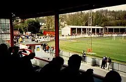 In 1985 the club moved back to the Pilot Field,[13] which since 1948 had seen the construction of two new stands behind one goal, floodlights and additional catering facilities. A new clubhouse was constructed near the main entrance in 1998 and further extended the following year, the "Cole Warren" stand was erected in 2005 at the far end of the ground and providing covered standing and seating on three sides of the ground.[37]
