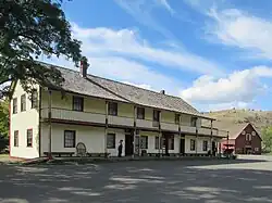 Hat Creek is a tributary of the Bonaparte River in British Columbia, Canada,[1] joining that stream at Carquile, which is also known as Lower Hat Creek and is the site of the Hat Creek Ranch heritage museum and visitor centre. The Hat Creek basin includes a broad upper plateau area encircled by the gentle but high summits of the Clear Range and, to its east, the Cornwall Hills; this area is known as Upper Hat Creek. Adjacent to Upper Hat Creek is the gateway to Marble Canyon and a rancherie of the Pavilion First Nation, who are both a St'at'imc and Secwepemc people. During the Fraser Canyon and Cariboo Gold Rushes an important trail northwards from the lower Fraser Canyon led from Foster Bar on the Fraser via Laluwissen Creek into Upper Hat Creek, then via the creek to the Bonaparte River. The economy of the basin is ranching-based and includes some of the oldest ranches in the British Columbia Interior. On the northwest edge of the Upper Hat Creek basin there is a large lignite deposit and several exploratory pits, some dating back to the 19th century but some more recent, part of an intended, but now shelved (at least temporarily) Hat Creek coal-thermal proposal.