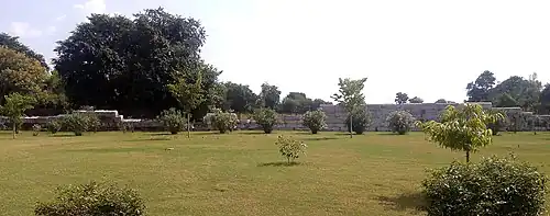 Within the inscriptions, a local king of Madhyamika (modern day Nagari, Rajasthan) named Sarvatata is mentioned.[15][16][17][18] According to inscriptions, he performed the Ashvamedhayajna and also constructed a Narayana-vatika (vatika may mean "garden") compound dedicated to Saṃkarṣaṇa and Vāsudeva.[19] The inscription also names Gajayana as Sarvatata's gotra or dynasty name, though this also is unclear. The same inscription names his mother's gotra as Parasari or Parāśara.[20][21]