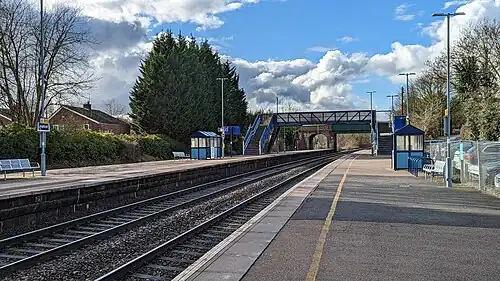 Hatton is the junction station at which the lines from Leamington Spa to Stratford-upon-Avon and Birmingham diverge. The station is unstaffed; there is one ticket machine located at the single entrance to the station on the London-bound (southbound) platform. There is a small shelter on Platform 1 (southbound – for trains from Birmingham to Leamington Spa) and also one on the island platform, which consists of Platforms 2 and 3 (Platform 2 is for Birmingham-bound services and Platform 3 is for stations from/to Stratford upon Avon, which bear to the west immediately north of the station. Trains can, however, use both Platforms 2 and 3 to reach Birmingham, as just outside the station, the lines re-join). A footbridge links Platform 1 with island Platform 2/3.