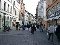 The Hauptstrasse (German: Hauptstraße, "Main Street") is the central street of Heidelberg's old town, the Altstadt, running the full length of the quarter. Today, it is a pedestrianised zone and popular shopping street. Numerous landmarks are located along its course, including the Town Hall, the Church of the Holy Spirit, and the Church of Providence.
