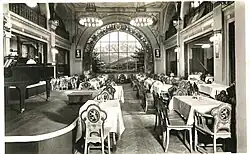It was an enormous and popular establishment,[31] and like Haus Potsdam before it, is frequently alluded to in both artistic and tourist contexts, for example in Irmgard Keun's 1932 novel Das kunstseidene Mädchen (The Artificial Silk Girl).[14] Its combination of spectacle, variety performances, international dining and cinema was unique.[32] Large sees it as having been "a kind of proto-Disney World".[22] The building could accommodate up to 8,000 people; the 4,454 square metres of theme restaurants had a capacity of 3,500 people and Café Vaterland was the largest in the world; the one millionth guest was recorded in October 1929, barely a year after the opening.[33][34]