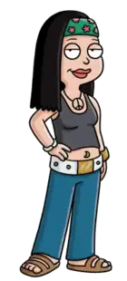Hayley is Stan and Francine's new-age hippie daughter who, despite being a married adult for much of the series, still lives under her parents' roof along with her husband, Jeff. As revealed in the episode "The Kidney Stays in the Picture", she may or may not be Stan's biological daughter—Francine revealed to have cheated on Stan at a bachelorette party.[4] Nonetheless, Stan still regards her as such.[5] Hayley is passionate, insistent and vocal in her convictions. In mentality, she's portrayed as a passionate liberal, what was originally intended to be the antithesis to her father's conservatism. These character traits were particularly emphasized in the show's beginnings but heavily toned down afterwards.[6] Intuitive and insightful, Hayley is able to instinctively grasp the hidden, inner, and obscure nature of situations. For example, she is able to see through Stan's disguise as a Russian communist to get her to come home in the episode "Stan Knows Best", and also, instantly upon entering the room in the episode "Finger Lenting Good", she realizes what Stan and Steve are up to in trying to get Jeff to hug them so as to lose his finger for engaging in his [Jeff] vice.[7] As another example, in the episode "Da Flippity Flop" when the essence of Klaus has entered Stan's body and taken control over it, he attempts to deceive Hayley and Francine into thinking he's truly Stan; however, Hayley instantaneously and half-heartedly acknowledges that it's Klaus.[8] At times, Hayley is casually rude and insulting in attitude especially towards her brother, Steve, which can be described as sibling rivalry. This is primarily because of Hayley's disgust for Steve's obnoxious tendencies and generally shallow taste and desire towards the opposite sex. Several story arcs have been about Hayley's romantic relationship with Jeff. Back when the two were dating, they had several breakups. Hayley is very often the most empathetic member of her family. She helped to unionize the homeless men Stan paid to fight each other,[9] helped free foster children that Roger had enslaved,[10] and is the one most likely to stand up for people's rights when her family tries to exploit people. Nevertheless, she is also sometimes seen as hypocritical and has moments of weakness—for example, in "Camp Refoogee" she went to an African refugee camp and swore to help the starving people during the short time she expected to be there. However, after finding out they would be there for a few weeks, she went to the spa-like U.N. aid base and went so far as to eat steak,[11] despite being a vegetarian (The episode, "The Longest Distance Relationship", she eats part of a steak, and in "N.S.A. (No Snoops Allowed)", she went an entire day eating just meat after she ate some by mistake). She is often disrespected by other more shallow and self-involved members of the household who seem to find her annoying and are contemptuous of her kinder and more selfless character, especially Stan and Roger.