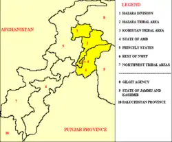 The northernmost part was the Kohistan Tribal Area, whilst the southernmost part was the Hazara Division. Hazara Tribal Agency was located between the Hazara Division and the Kohistan Tribal Area.