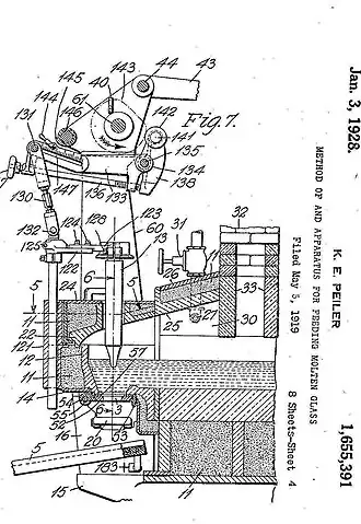 In 1926 Hartford had a pending Peiler patent application on a "gob feeder" glass-making machine. The Patent Office confronted Hartford with "apparently insurmountable opposition." To help persuade the Office to grant the application, Hartford's patent attorney R.F. Hatch "ghost-wrote" a trade journal article for a union official, Clarke, praising the invention as a revolutionary advance, and paying him to sign it. Hartford's patent attorneys Brown and Dorsey brought the published article to the attention of the Patent Office. The Office then issued the patent (U.S. Patent No. 1,655,391), in 1928. Hartford then sued Hazel for infringing the patent. The district court dismissed the bill, however, on the ground that no infringement had been proved. The court considered the patent to be at best only a slight improvement in a well-developed art (automatic feeders for mechanical glass bottle blowing), accordingly held that the claims were not entitled to a broad construction and that, with the Peiler patent so construed, Hazel had not infringed.[4]