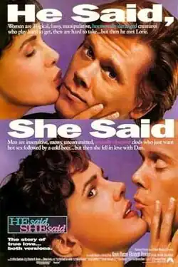 He Said, She Said is a 1991 American romantic comedy-drama film directed by Ken Kwapis and Marisa Silver. It stars Kevin Bacon and Elizabeth Perkins as two journalists working in the same office and falling in love with each other. The film depicts the story of the relationship between journalists Dan Hanson (Kevin Bacon) and Lorie Bryer (Elizabeth Perkins) told twice – once from each perspective. The male story was directed by Ken Kwapis and the female story by Marisa Silver. At the time, Kwapis and Silver were engaged and they married soon after the film was released. The film was a box-office flop.