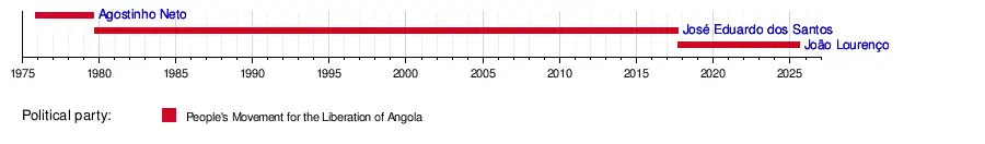 This is a graphical lifespan timeline of the presidents of Angola. They are listed in order of first assuming office.