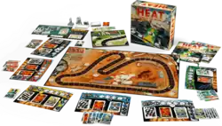 Heat: Pedal to the Metal is a strategy board game designed by Asger Harding Granerud and Daniel Skjold Pedersen, with art by Vincent Dutrait, published by Days of Wonder in 2022. It is a race game in which players play cards to move their race cars around a circuit, carefully managing their speed and heat, the game's core mechanics, in order to finish ahead of others. Heat has received several awards since its release, including the 2022 Golden Geek Award Medium Game of the Year, and two expansions since been released.