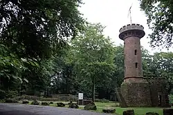 The Bismarck Tower was built in 1903 as a monument to Otto von Bismarck. It is one of the Bismarck towers constructed after Wilhelm Kreis' design, intended to have a flame lit at the top. It is on the south slope of the Heiligenberg overlooking the Philosophers' Way.