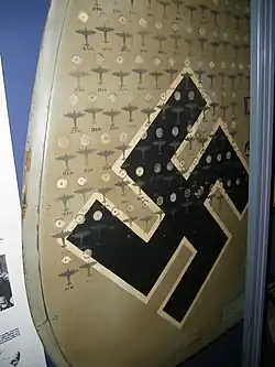 Schnaufer's Messerschmitt Bf 110 G-4/U 8 was brought to England after the war. The aircraft was displayed in London's Hyde Park.[109] The port-side vertical stabiliser of this twin tailed aircraft, tallying all his victories, is preserved at the Imperial War Museum in London.[110] A fin from another Bf 110 flown by Schnaufer is at the Australian War Memorial in Canberra. The Calw district Heumaden has a street name "Heinz-Schnaufer-Straße".[111] This street was named after him. In August 1994, a local newspaper published a series about roads named in honor of local personalities, triggering a public debate.[112]