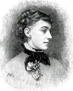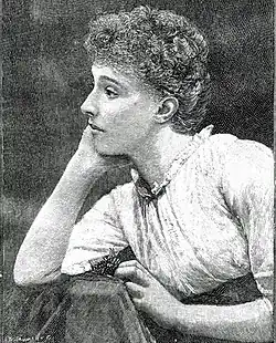 For the next four years, Mrs Tree appeared in a range of roles, including that of Maud in Tree's one-act play Six and Eightpence, but husband and wife did not appear in the same plays.[2] In 1887, however, she joined Tree's company at the Theatre Royal, Haymarket, appearing with him in numerous roles.[2] Under Tree's direction she played in works by Pinero, Grundy, Wilde, Sheridan and Shakespeare.[4] I