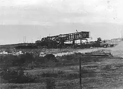 A 4-mile 8-inch pipeline was completed in early April 1956, accompanied by 2 elevated 750 ton tanks at the field, from where the oil flowed by gravity at a rate of 40 tons per hour (ca. 7,000 barrels per day) to the nearby railhead at Beit Shikma, from where it was shipped to the Haifa refinery, replacing the previous mode of transport by tanker trucks. At that time, the Heletz No. 3 well had struck oil.[4]