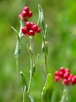 Helichrysum sanguineum, known in English as red everlasting and red cudweed, is a flowering plant of the genus Helichrysum in the family Asteraceae.[1] It grows in mountain forests in the Levant where it blooms in April–June.[1][2] The flower, known in Hebrew as "Blood of the Maccabees", has become the icon of Yom Hazikaron, Memorial Day for Israel's Fallen Soldiers and Victims of Terrorism.[1]