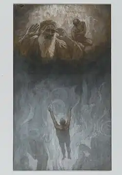 The parable of the Rich man and Lazarus depicting the rich man in hell asking for help to Abraham and Lazarus in heaven by James Tissot