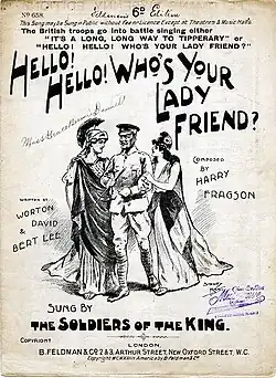 "Hello! Hello! Who's Your Lady Friend?" is an English music hall song from 1913, with music by Harry Fragson and words by Worton David and Bert Lee.