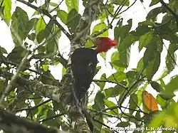 - ^ a b Benz, B.W.; Robbins, M.B.; Zimmer, K.J. (2015). "Phylogenetic relationships of the Helmeted Woodpecker (Dryocopus galeatus): A case of interspecific mimicry?". Auk. 132 (4): 938–950. doi:10.1642/AUK-15-72.1.