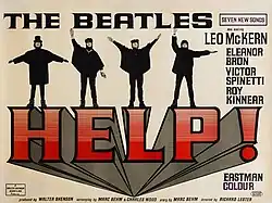 Help! is a 1965 British musical comedy-adventure film directed by Richard Lester, starring the Beatles and featuring Leo McKern, Eleanor Bron, Victor Spinetti, John Bluthal, Roy Kinnear and Patrick Cargill. The second film starring the Beatles following Lester's A Hard Day's Night, Help! sees the group struggle to protect Ringo Starr from a sinister eastern cult and a pair of mad scientists, all of whom are obsessed with obtaining a sacrificial ring sent to him by a fan.[3] The soundtrack was released as the band's fifth studio album under the same name.
