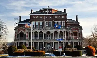 Henderson Building is a historic administration building located on the campus of Southwestern Virginia Mental Health Institute at Marion, Smyth County, Virginia. It was built in 1887 in the Victorian style and remodeled in 1930–1931, in the Classical Revival style. When built, it was a four-story, brick building with a 118-foot clock tower. With the 1930-1931 remodeling, The tower was removed and replaced with an octagonal rotunda and the building reduced to three stories. A two-story front portico was also added. In accordance with the Kirkbride Plan, the building was once connected to three radiating three story ward wings. The wings were replaced in the 1980s.[3]