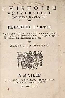 - ^ Compere, Daniel (2016). "Amours, passions et gloire : Aubigné relu et récrit par Michel Peyramaure". Albineana, Cahiers d'Aubigné. 28 (1): 111–126. doi:10.3406/albin.2016.1562.