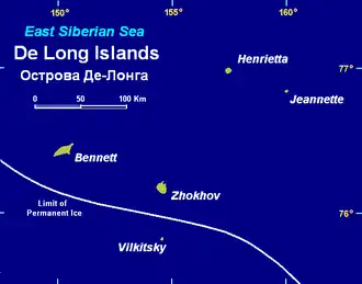 Henrietta Island (Russian: Остров Генриетты, romanized: Ostrov Genriyetty; Yakut: Хенриетта Aрыыта, romanized: Xenriyetta Arııta) is the northernmost island of the De Long archipelago in the East Siberian Sea. Administratively it belongs to Yakutia of the Russian Federation.