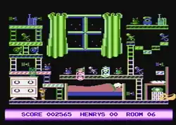 Henry's House is a platform game developed by Chris Murray for the Atari 8-bit computers and Commodore 64. The Commodore 64 version was published by English Software in 1984,[1] while the Atari 8-bit version from by Mastertronic followed in 1987.[2] The game, produced in the United Kingdom, is loosely based on Prince Henry of Wales who was then a baby. The working title of the game was Home Sweet Home.