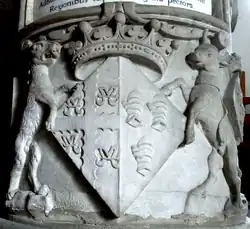 - ^ Supporters as surviving in stained glass window in cloister of Hengrave Hall, Suffolk, of arms of John Bourchier, 2nd Earl of Bath as blazoned by Rokewood, John Gage, The History and Antiquities of Suffolk: Thingoe Hundred, pp. 218–19 [1]