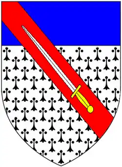 - Charles Dakeyne Gladwin (1775–1844), eldest son and heir, Lt-Col. of the Derbyshire Militia, who let Stubbing Court to James Abercromby, 1st Baron Dunfermline (1776–1858), Speaker of the House of Commons and moved to Belmont in the parish of Brampton, Derbyshire.[15] Charles married Mary Anne Stringer and left one daughter, Frances Gladwin, his sole heiress, who married Stephen Melland.[7] The Gladwin estates descended to Charles's great-nephew Captain Richard Henry Goodwin-Gladwin (1833–1895) of Hinchley Wood House, Ashbourne, who on 24 April 1881 assumed the surname and arms of Gladwin by royal licence.[16] Richard's own heir was his nephew (son of his sister Frances Goodwin and her husband John Errington) Gilbert Launcelot Gladwin-Errington (born 1876), of Hinchley Wood House.[7]