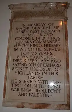 - ^ a b "Major General Sir Henry West Hodgson". War Memorials. Retrieved 7 September 2013.