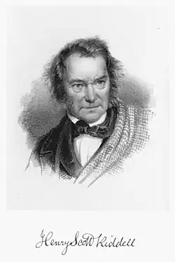 Henry Scott Riddell was born on 23 September 1798 in Sorbie, near Langholm, Dumfriesshire, the third child of seven to Robert Riddell, a shepherd, and his wife Agnes (née Scott). His father was reportedly an associate of the Scottish poets James Hogg, the Ettrick Shepherd, who would occasionally visit their household and recite his own poetry to the children, and Walter Scott, as well as Sir Pulteney Malcolm. His elder brother, Borthwick Riddell, known as The Piper, was a locally renowned player of the bagpipes who notably played at the wedding of John Russell, 1st Earl Russell to Lady Frances Anna-Maria Elliot-Murray-Kynynmound, daughter of Gilbert Elliot, 2nd Earl of Minto, on 20 July 1841.[2] His younger brother, Robert Riddell, emigrated to Canada and was an early pioneer of Beverley Township in Ontario. He also participated in the Upper Canada Rebellion, coming to be known as The Chief, leading dozens of men from County Wentworth in a march to Woodstock, Ontario.