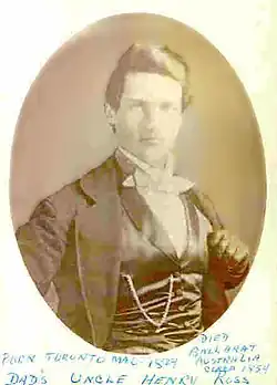Ross was born in Toronto, in the British colony of Upper Canada which had amalgamated into the colonial Province of Canada by the time he departed. He became a gold miner in California during the gold rush and probably arrived at Melbourne on the Magnolia in November 1852, along with Charles Doudiet and three other Canadians.
