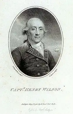Captain Henry Wilson (1740 – 10 May 1810) was a British sea captain from Rotherhithe.[1] He commanded the East India Company packet ship Antelope, when it shipwrecked off Ulong Island in 1783.[2] Wilson also captained the East Indiaman Warley at the Battle of Pulo Aura.