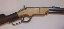 For an American Civil War soldier, owning a Henry rifle was a point of pride.[5] Just 1,731 of the standard rifles were purchased by the government during the war.[6] The Commonwealth of Kentucky purchased a further 50. However, 6,000 to 7,000 saw use by the Union on the field through private purchases by soldiers who could afford it. The relative fragility of Henrys compared to Spencers hampered their official acceptance. Another weak point for the Henry was that it could not be equipped with a bayonet. Many infantry soldiers purchased Henrys with their reenlistment bounties of 1864. Most of these units were associated with Sherman's Western troops.