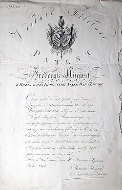 After graduating from French military academies, in 1806 he became a captain of grenadiers and adjutant to Marshal Nicolas Oudinot. For his participation in the 1806–07 campaign he received the Virtuti Militari order and the Légion d'honneur. On 30 January 1808 he became captain of the 1st Infantry Regiment of the Duchy of Warsaw. He was then appointed one of the four squadron commanders of the Polish 1st Light Cavalry Regiment of the Imperial Guard and deployed with that unit from Germany to Madrid.[1] He fought in the anti-guerrilla force commanded by Jean-Baptiste Bessières, including at Somosierra, and escorted Napoleon on his return from Spain to France.