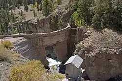 An old hydroelectric dam (38.020972 N, 107.378837 W) that supplied power for the mine lies on the creek at the Ute-Ulay mine site. Called the Hidden Treasure Dam, it burst in 1973 causing flooding and pollution downstream. The dam still stands and is visible from the road, but with a big hole in it.[2]