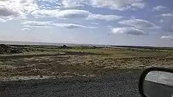 The small bay Herdísarvík (Gullbringusýsla) with the remains of the farm and the former house of Einar Benediktsson is situated actually at the foot of Herdísarvíkurfjall [-ˌviːkʏrˌfjatl̥]. The lava covering the land, Herdísarvíkurhraun [-ˌviːkʏr̥ˌr̥œiːn] (actually 3 lava flows, partially covering each other), came down from this volcanic mountain in the form of lava falls. They had their origin in different craters of the Brennisteinsfjöll volcanic system.[1]