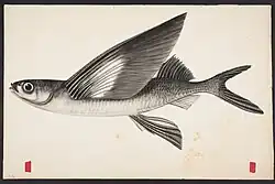 Flying fish split by the war-canoe