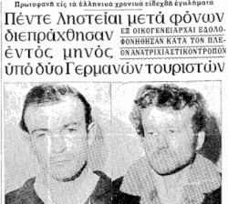 The dictatorial regime in Greece at the time forbade newspapers from publishing news about this series of murders until the two perpetrators were captured.[2]