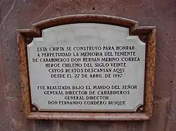 - ^ "HOMAGE TO LIEUTENANT HERNÁN MERINO CORREA − Huellasdigitales.cl". Archived from the original on March 4, 2016. Retrieved December 19, 2008.