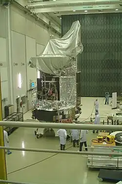 The spacecraft, built in the Cannes Mandelieu Space Center, under Thales Alenia Space Contractorship, was successfully launched from the Guiana Space Centre in French Guiana at 13:12:02 UTC on 14 May 2009, aboard an Ariane 5 rocket, along with the Planck spacecraft, and placed on a very elliptical orbit on its way towards the second Lagrangian point.[33][34][35] The orbit's perigee was 270.0 km (intended 270.0±4.5), apogee 1,197,080 km (intended 1193622±151800), inclination 5.99 deg (intended 6.00±0.06).[36]