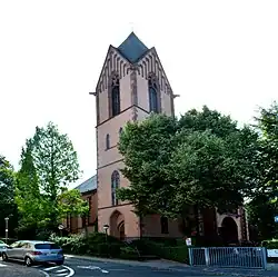 Herz Jesu Oberrad (Sacred Heart, literally: Heart of Jesus, German: Herz-Jesu-Kirche) is a Catholic church in the suburb Oberrad of Frankfurt am Main, Hesse, Germany. The parish church of the Oberrad congregation is part of the Diocese of Limburg. It is a Kirchort (church location), part of the parish St. Bonifatius Frankfurt.