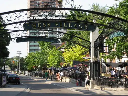 Hess Village is a pedestrianized area in the downtown of Hamilton, Ontario, Canada. Its streets, in contrast to other areas in Hamilton, are quite thin and restrict vehicle access. It is located between Main and King Street, and a block north west of city hall. It is home to various amenities and shops, notably nightclubs, bars, and historic buildings. It is named after Hess Street, a north-south Lower City collector street that travels through the centre of the area.