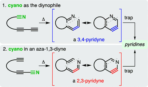Nitriles can also participate in the HDDA reactions to generate pyridyne intermediates.[22] In situ capturing of pyridynes gives rise to highly substituted and functionalized pyridine derivatives, which is complementary to other classical approaches for construction of this important class of heterocycles.