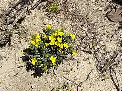 This hibbertia grows in heath, shrubland, usually in sandy soil, mostly in the Avon Wheatbelt.[2][3]