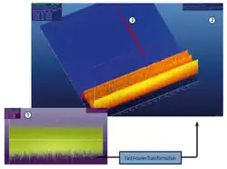 High-frequency-impulse measurement is an algorithm for obtaining frequency information of any structure- or air-borne sound source on the basis of discrete signal transformations. This is mostly done using [Fourier series] to quantify the distribution of the energy content of a sound signal in frequency space. On the software side, the tool used for this is the fast Fourier transform (FFT) implementation of this mathematical transformation. This allows, in combination with specific hardware, to directly obtain frequency information so that this is accessible in-line, e.g. during a production process. Contrary to classical, off-line frequency analysis methods, the signal is not unfolded before transformation but is directly fed into the FFT computation. Single events, such as cracks, are hence depicted as extremely short-lived signals covering the entire frequency range (the Fourier transform of a single impulse is a signal covering the entire observed frequency space). Therefore, such single events are easily separable from other noises, even if they are much more energetic.