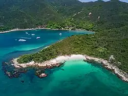 High Island or Leung Shuen Wan Chau (糧船灣洲, Cantonese Yale: lèuhng syùhn wāan hói)[1] is a former island located in the southeast of Sai Kung Peninsula in Hong Kong, within Sai Kung District. Two sets of dams constructed between 1969 and 1979 and crossing the former Kwun Mun Channel (官門海峽), connect the island to the peninsula, thereby forming the High Island Reservoir. Before being connected to the mainland, the island had an area of 8.511 km² (3.29 square miles) and was the 4th largest island of Hong Kong in 1960.[2]